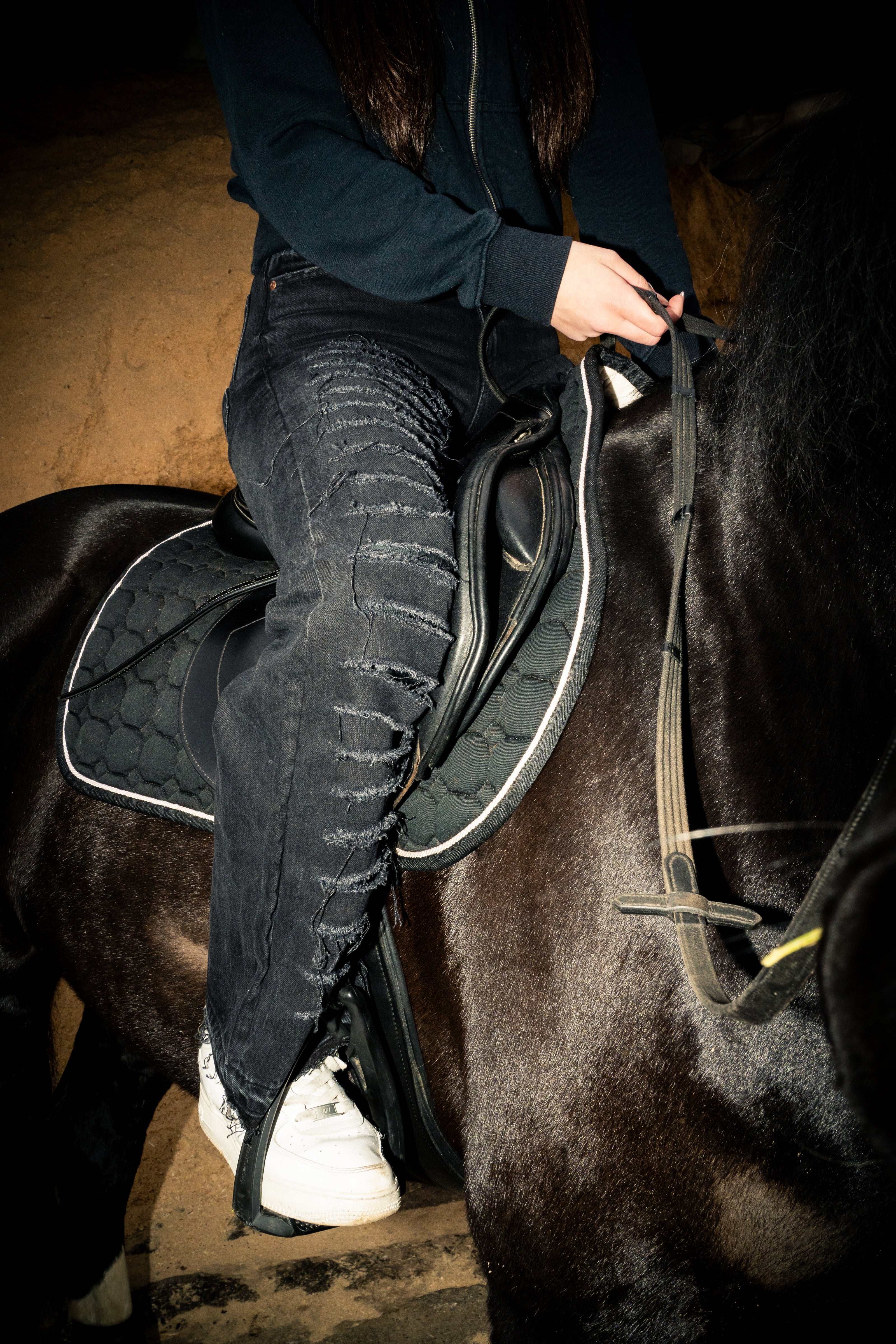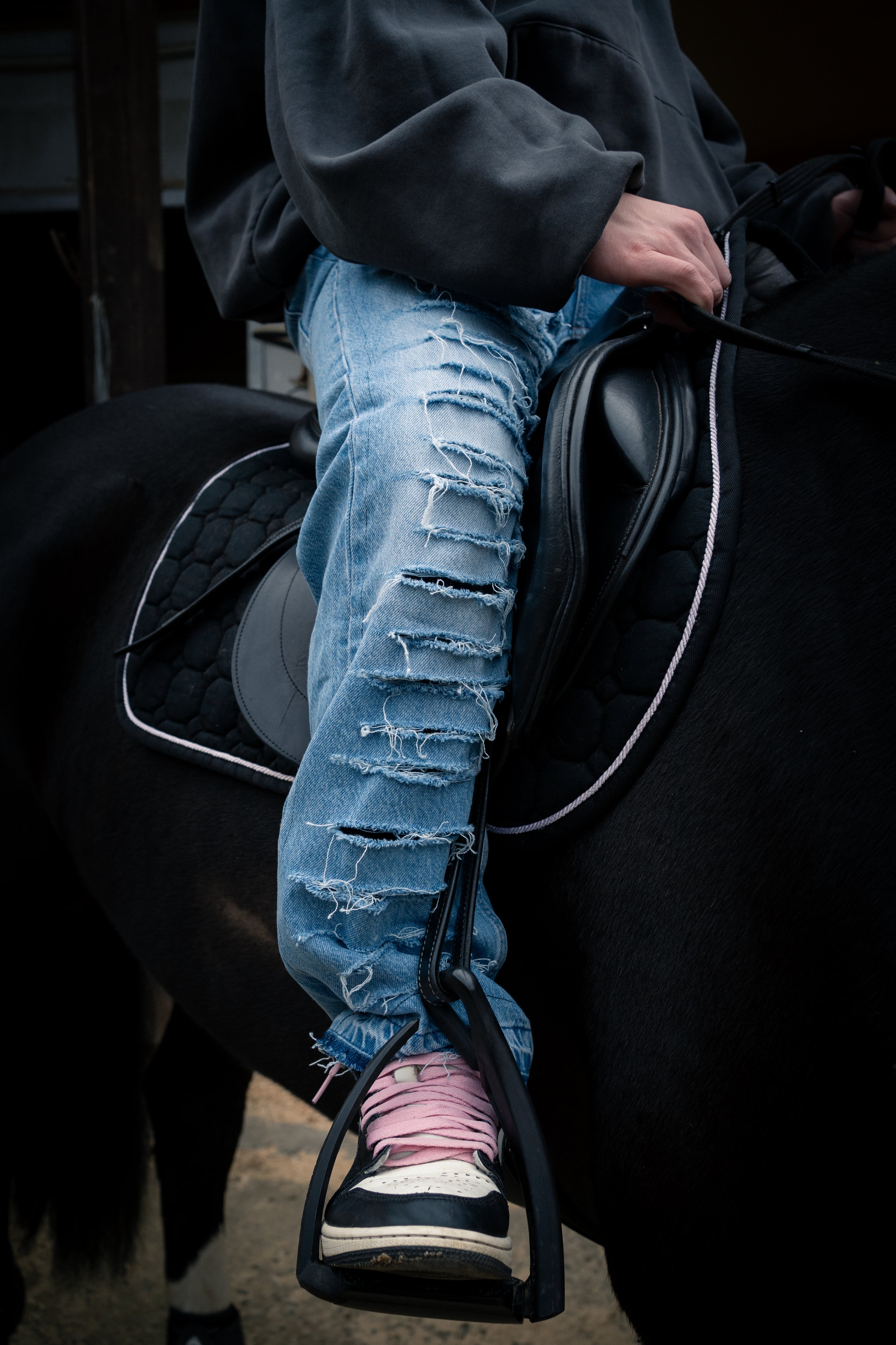 CUSTOM DISTRESSED CHAIN JEANS WMNS