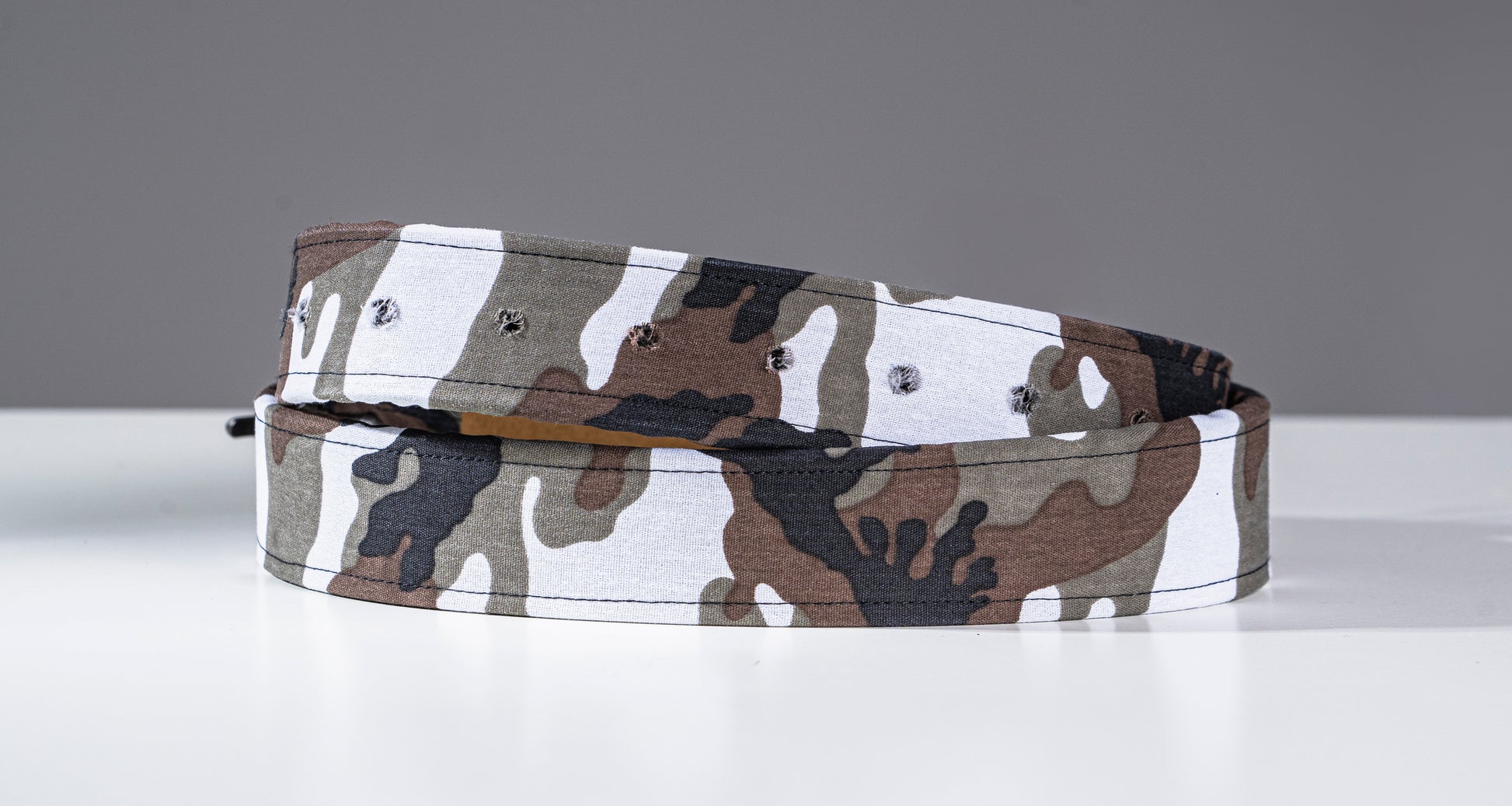 Dodej svému outfitu detail, který nikdo nepřehlédne. Každý pásek má camo vzor ručně našívaný přímo na pásek, takže je to opravdu speciální kousek.