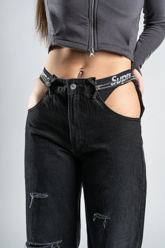 CUSTOM DISTRESSED CHAIN JEANS WMNS