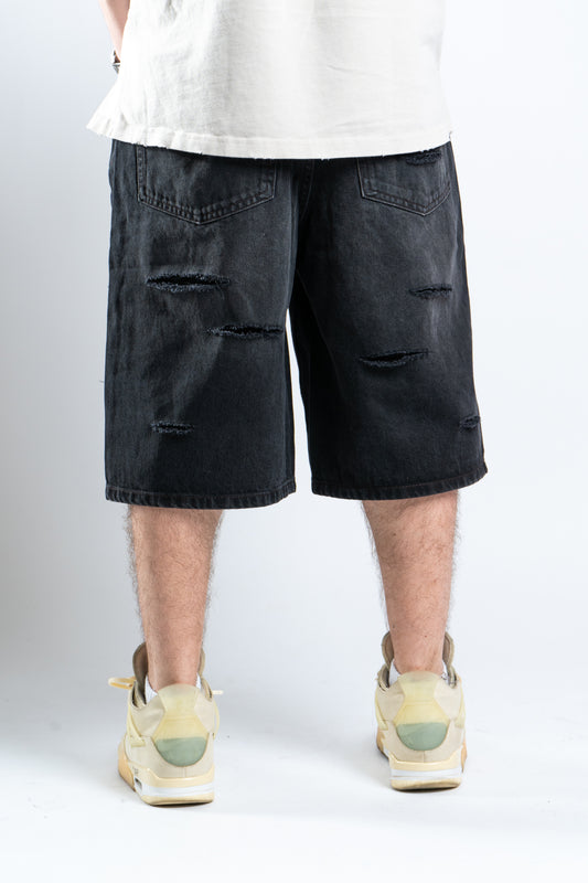 DISTRESSED BLACK SHORTS