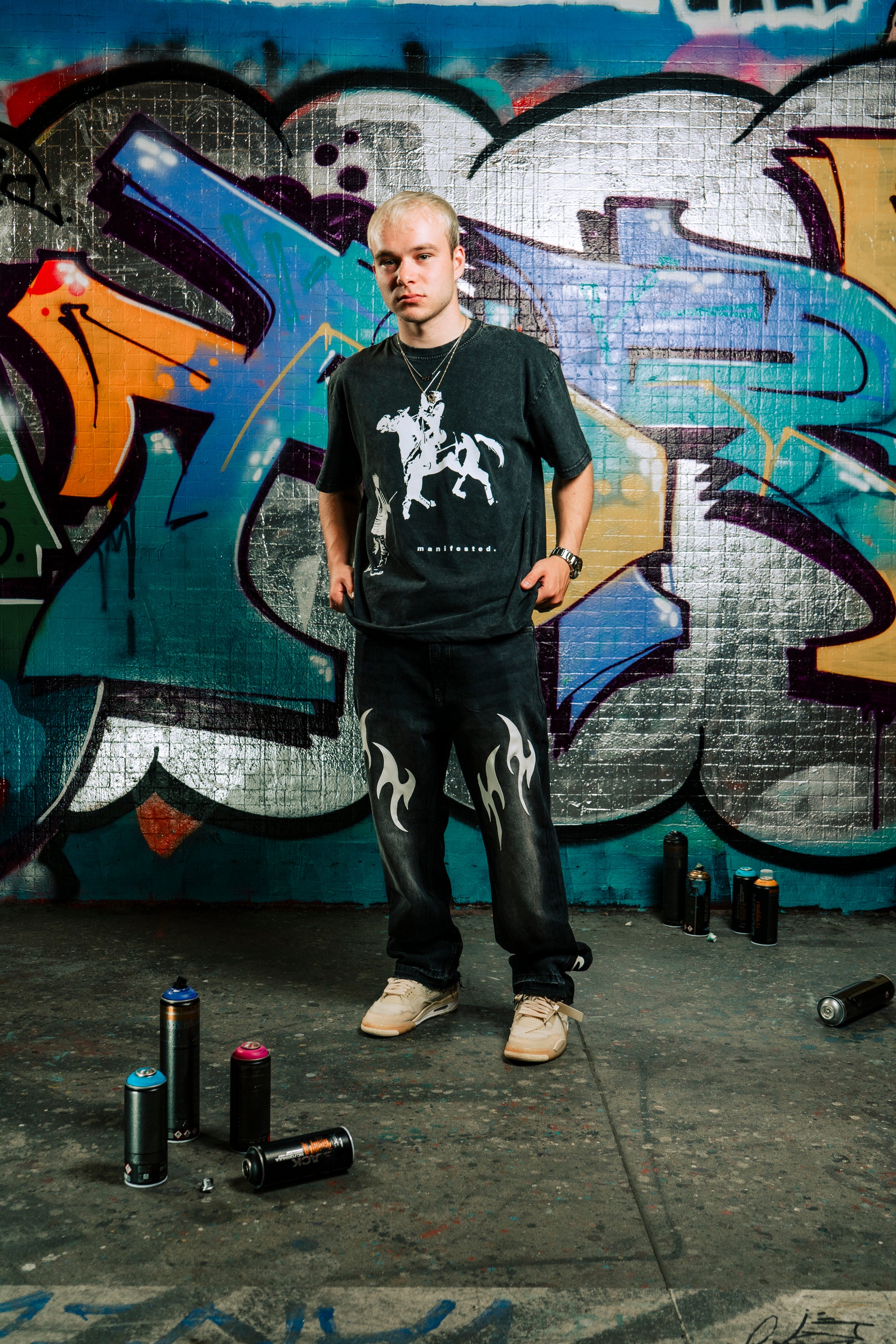 Baggy Flared Jeans s koženými tribaly. Jedinečný střih kombinuje pohodlný baggy fit s flared zakončením. Kožený detail na rozšíření nohavic a kožené tribaly vpředu dodávají kalhotám krásný vzhled a originální charakter. Prémiový denim, kvalitní provedení, design pro ty, co chtějí víc než jen obyčejné džíny.