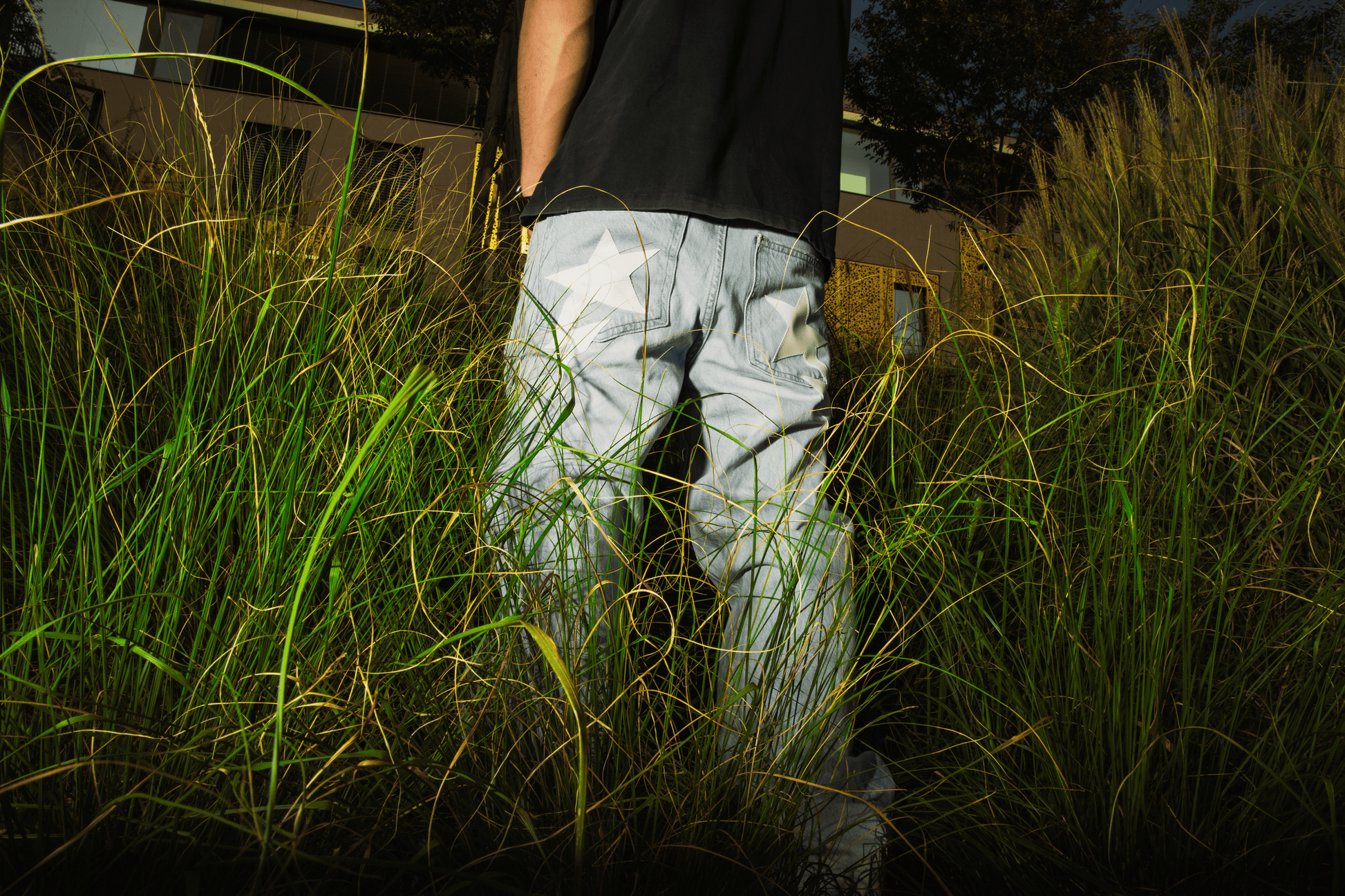 Blue Jeans s koženými hvězdami jsou volné džíny, které kombinují pohodlný střih s originálním detailem. Ručně přišité kožené hvězdy na zadních kapsách dodávají každému kusu jedinečný charakter a autentický streetwear vibe. Čistý předek dává kalhotám minimalistický look, který snadno zkombinuješ s jakýmkoliv outfitem.